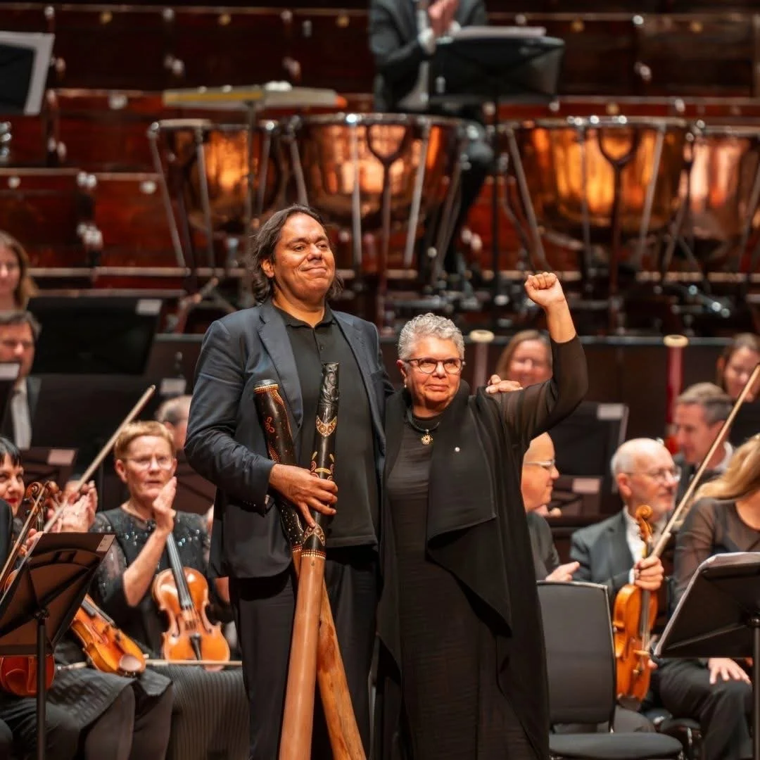 Deborah Cheetham Fraillon & yidaki master William Barton enjoy a standing ovation at the 2025 edinburgh festival and at the Elbphilharmonie in hamburg